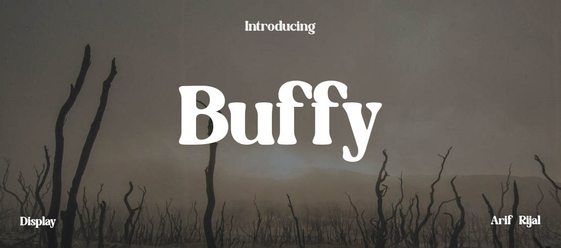 Buffy is a bold, slab serif typeface inspired by American wood type. It's a strong and impactful font perfect for headlines, posters, and display typography, offering a vintage yet modern aesthetic.