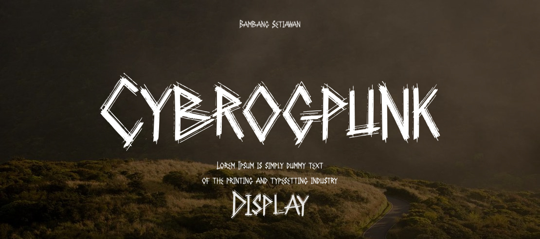 Cybrogpunk is a futuristic display typeface embodying a high-tech, cybernetic aesthetic, perfect for sci-fi themes, gaming, and cutting-edge design projects. Its bold, angular letterforms evoke digital advancement and urban grit.