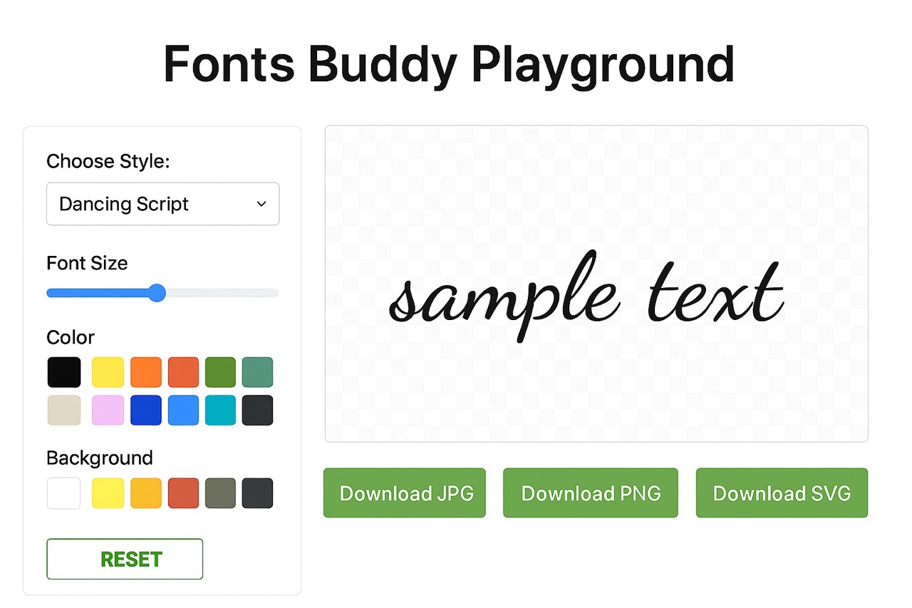 You can change the style, size, and color of your text, preview it live with a background, and download your design as JPG, PNG, or SVG in one click.