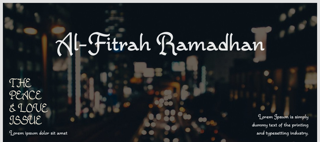 Al-Fitrah Ramadhan is an elegant, decorative display font inspired by traditional Arabic calligraphy, perfect for Islamic holiday designs, Ramadan greetings, Eid al-Fitr celebrations, and cultural events.