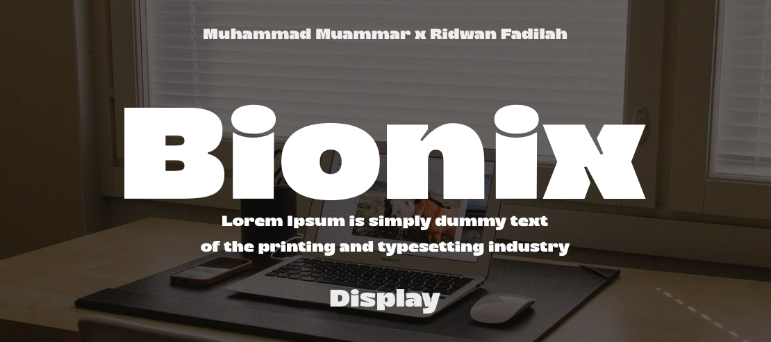Bionix is a distinctive pixelated display font, perfect for evoking a retro gaming, futuristic, or digital interface aesthetic. Its blocky, bitmap style is ideal for headlines, logos, and designs that require a vintage video game or sci-fi feel, offering a unique nostalgic charm.