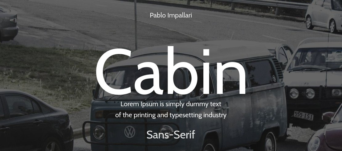 Cabin is a versatile and modern humanist sans-serif typeface designed for optimal readability across various applications. Its clean, open forms make it perfect for web, print, and branding, offering a friendly yet professional aesthetic.