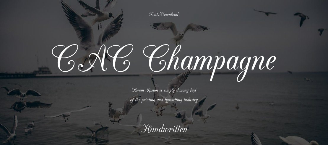 CAC Champagne (also widely known as Champagne & Limousines) is an elegant and flowing script font. Ideal for adding a touch of sophistication to invitations, branding, wedding stationery, and creative projects, its charming handwritten style makes it perfect for logos, headlines, and stylish designs.