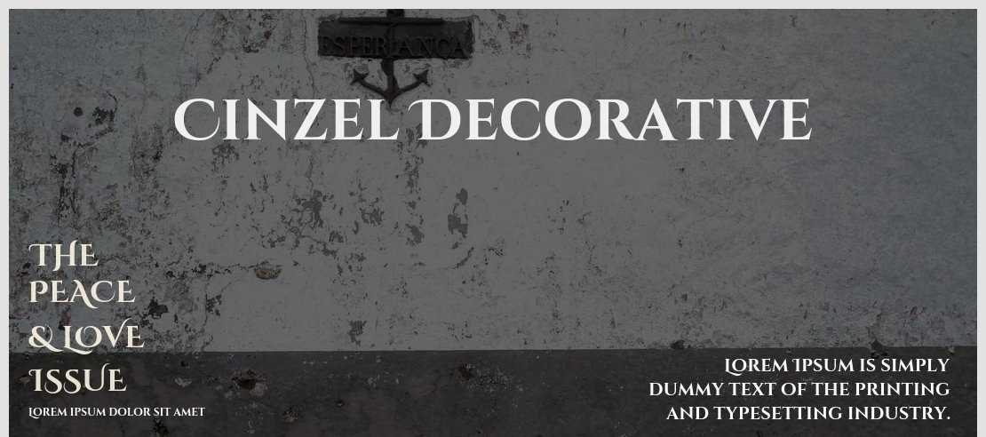 Cinzel Decorative is an elegant, high-contrast serif display font inspired by classical Roman inscriptions. Its sharp, sophisticated aesthetic is ideal for luxury branding, striking headlines, and ornate designs.