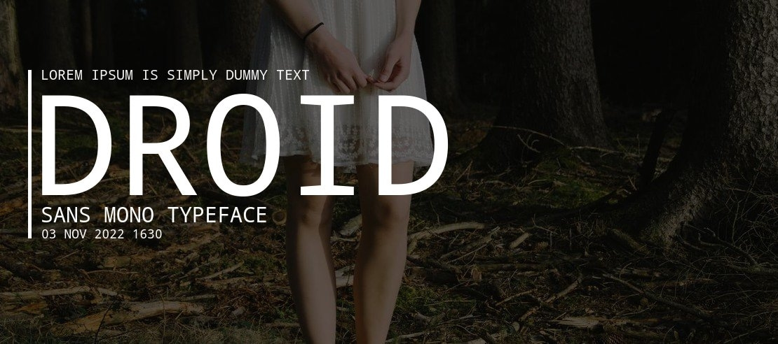 Droid Sans Mono is a highly legible, clean monospace sans-serif font optimized for coding, user interfaces, and console output. Designed by Steve Matteson, it ensures clarity with distinct characters, making it a favorite for developers and text editors.
