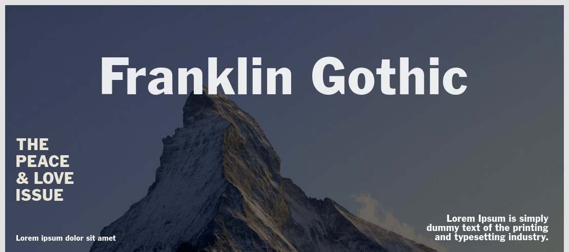 Franklin Gothic is a bold and influential sans-serif typeface designed in 1902 by Morris Fuller Benton for the American Type Founders (ATF). Belonging to the Sans-Serif category, its sub-category is Grotesque Sans-Serif, characterized by sturdy letterforms, strong vertical stress, and a solid, industrial appearance. Known for its impact and versatility, Franklin Gothic has been widely used in advertising, newspapers, magazines, signage, and corporate design throughout the 20th century and beyond. Its bold presence and legibility make it a favorite for headlines and display typography. Franklin Gothic is a proprietary typeface licensed by Monotype, requiring a commercial license for professional use.