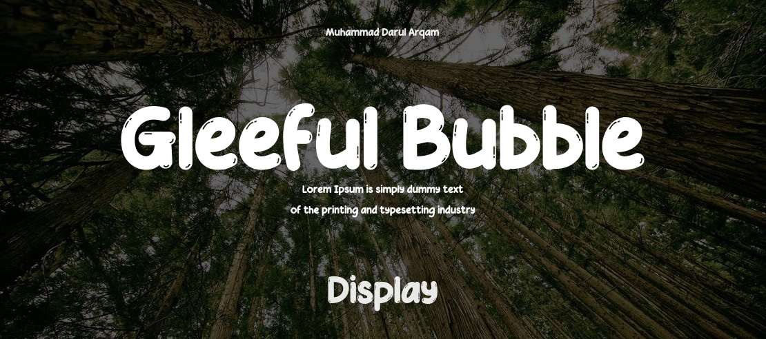 Gleeful Bubble is a playful and whimsical display font with a charming, rounded, bubble-like design, perfect for children's books, cartoons, creative branding, fun invitations, and any project needing a touch of cheer.