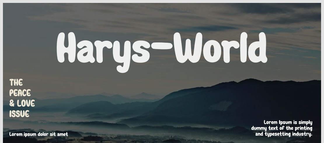 Harys-World is a whimsical and playful display font, ideal for projects needing a fun, cartoonish, or kid-friendly aesthetic. Perfect for children's books, comics, games, and cheerful designs.