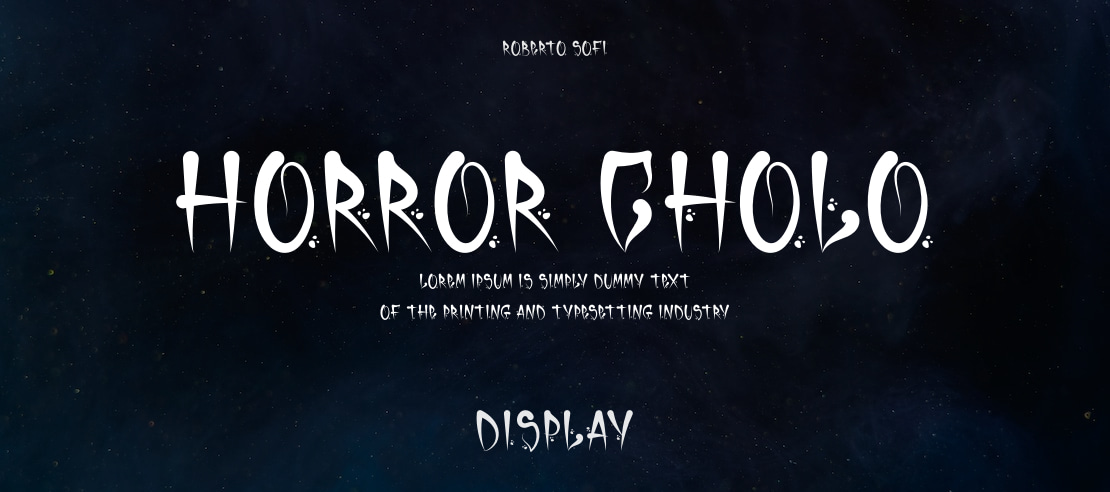 A bold and distinctive display font, 'Horror Cholo' blends unsettling horror aesthetics with rugged Chicano and graffiti influences. Ideal for striking headlines, posters, apparel, or any project needing an edgy, street-art inspired, and slightly menacing vibe.