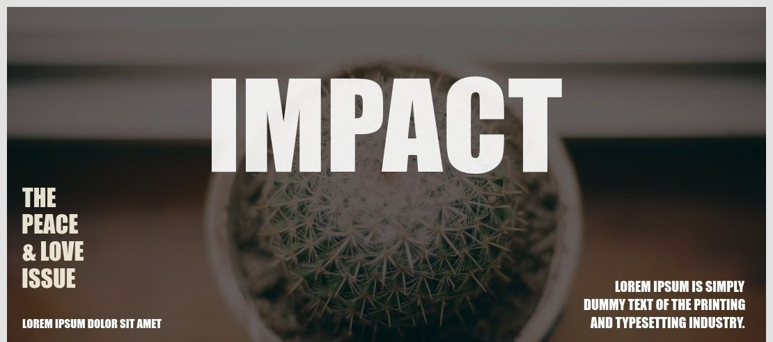 Impact is a powerful, condensed sans-serif display typeface renowned for its heavy strokes and tight spacing, designed to create maximum visual impact. Perfect for headlines, banners, memes, and any text needing strong attention.