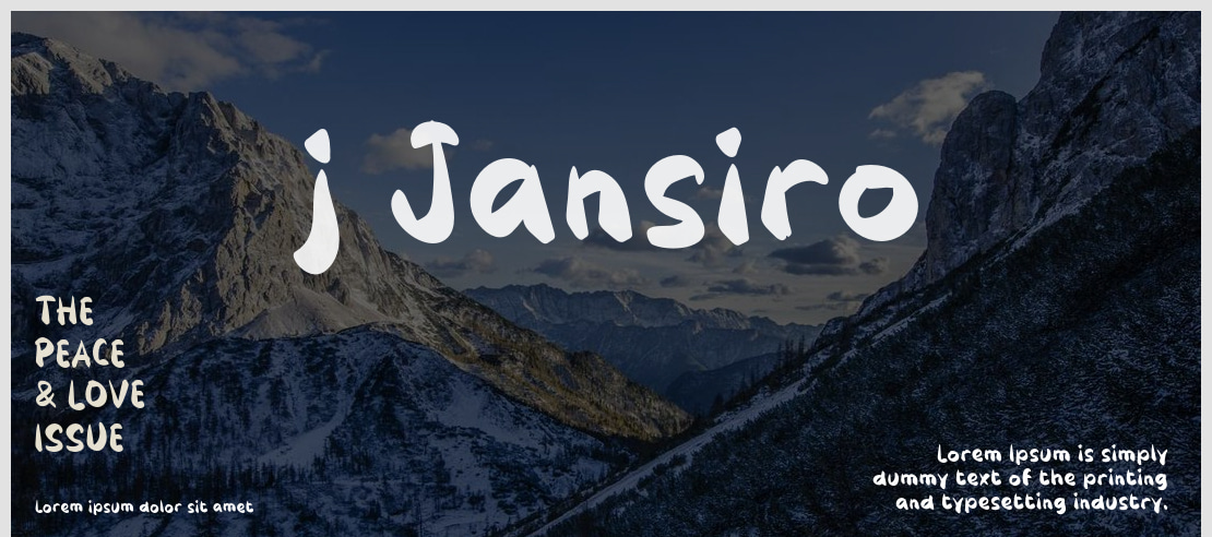 j Jansiro is a distinctive and modern decorative display font featuring unique geometric letterforms with sharp angles and stylized cut-outs. Ideal for headlines, logos, posters, and creative projects requiring a bold, futuristic, or tech-inspired aesthetic.