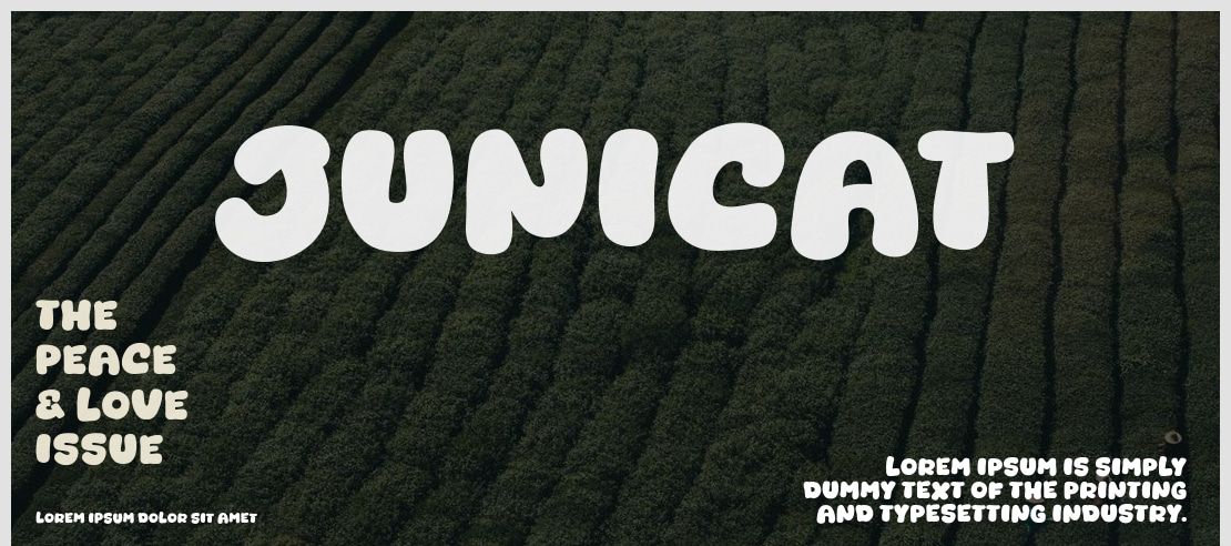 Junicat is a charming and playful display font, ideal for children's designs, games, cartoons, and fun branding. Its bouncy, rounded characters create a cheerful and whimsical aesthetic perfect for projects needing a cute and friendly touch.