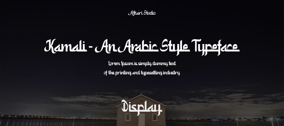 Kamali is a distinctive display font that elegantly captures the essence of traditional Arabic calligraphy and Islamic art. Its ornate and stylized letterforms are perfect for headlines, logos, posters, and branding projects seeking an authentic, exotic, or Middle Eastern aesthetic. Ideal for adding a touch of cultural richness and decorative flair.