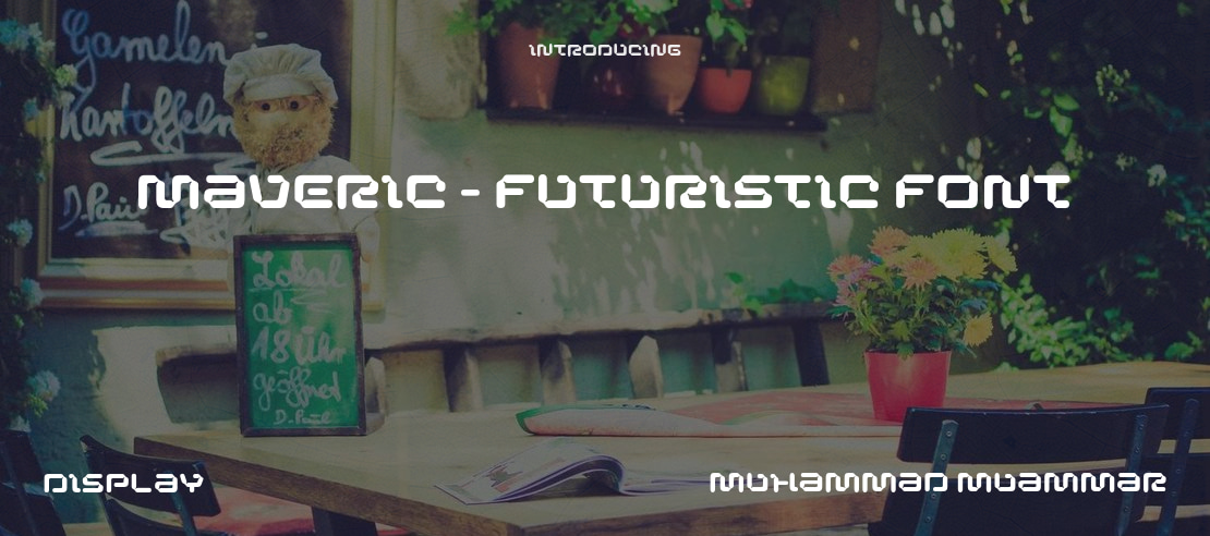 Maveric is a modern, geometric display typeface with a futuristic and sci-fi aesthetic, perfect for headlines, logos, gaming, and tech-related designs demanding a bold, contemporary look.