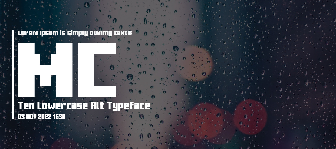 A charming pixel-perfect display font, MC Ten Lowercase Alt offers a unique retro aesthetic, ideal for gaming interfaces, nostalgic projects, and digital art with a distinct 8-bit charm.