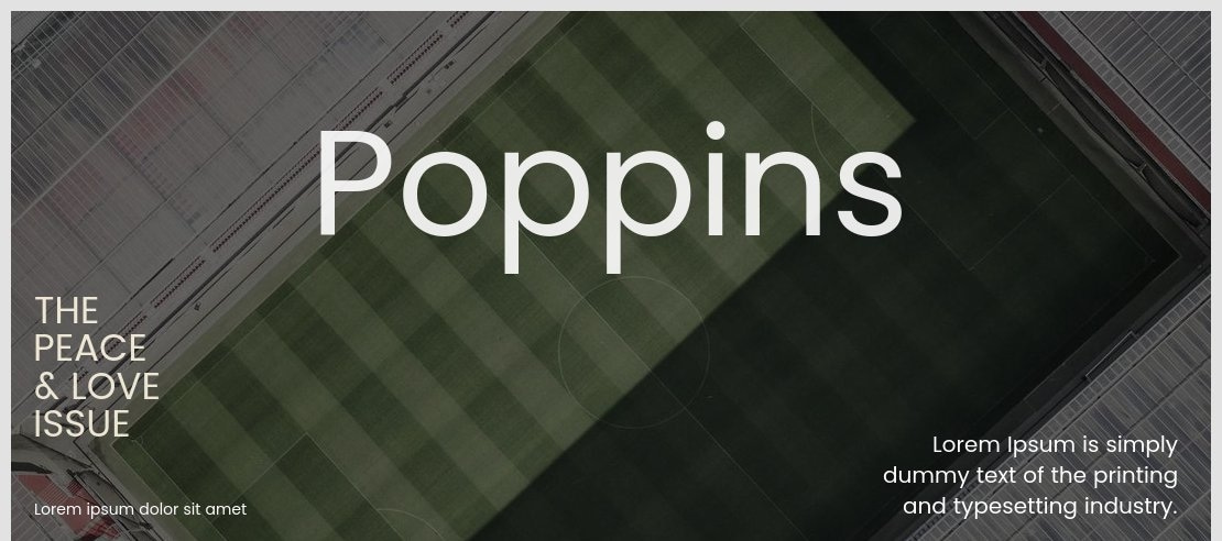Poppins is a geometric sans-serif font family designed by Indian Type Foundry (ITF), known for its clean, modern, and versatile letterforms. Released in 2014, it features monolinear strokes and a wide range of weights, making it ideal for web design, branding, headlines, and body text. The font supports the Latin and Devanagari scripts, making it perfect for multilingual projects. Poppins is available for free under the SIL Open Font License (OFL 1.1) for personal and commercial use and can be accessed via Google Fonts at fonts.google.com.