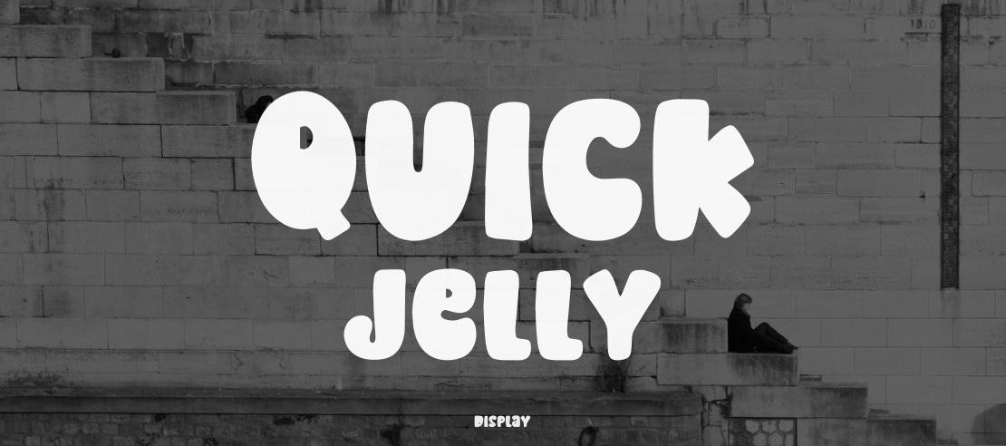 Quick Jelly is a fun, playful, and bouncy display font, perfect for adding a cheerful touch to any project. Its whimsical, cartoon-inspired style makes it ideal for children's books, games, party invitations, branding, headlines, and any design needing a friendly and energetic vibe.