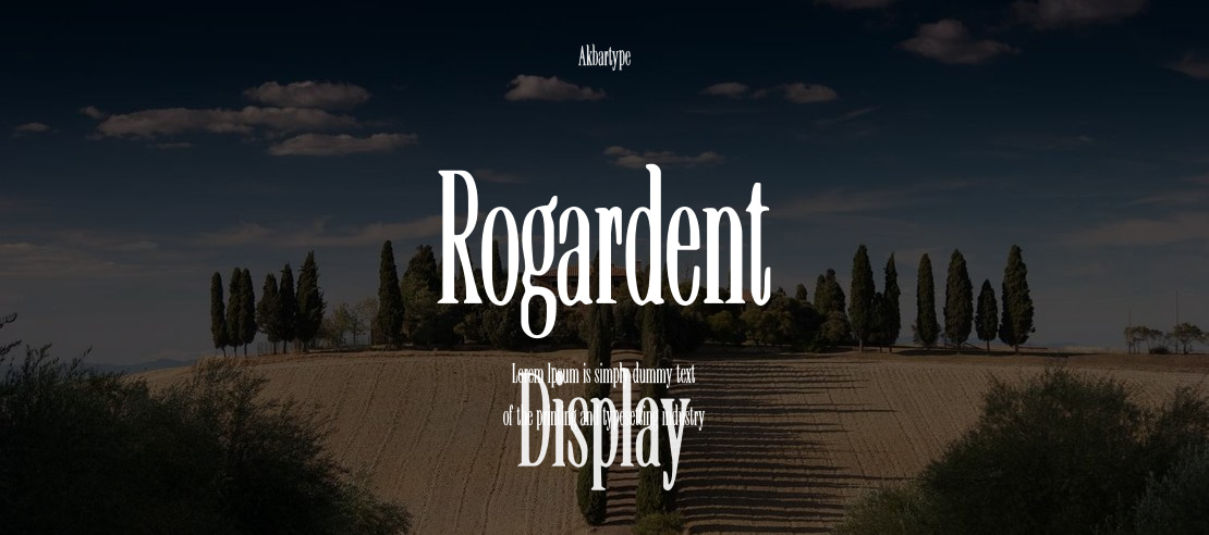 Rogardent is an elegant and classic display serif font, blending traditional old-style charm with modern refinement. Its sophisticated character and clear legibility make it ideal for headlines, branding, editorial design, and high-impact visual communication.