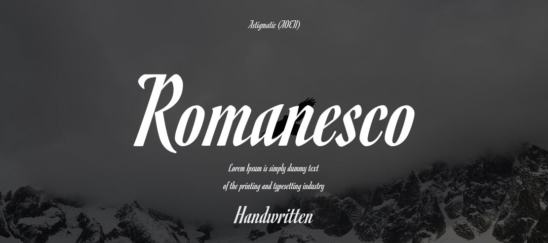 Romanesco is an elegant and expressive calligraphic script font designed by Ale Paul, featuring graceful swashes and decorative flourishes. Ideal for luxury branding, wedding invitations, greeting cards, and sophisticated design projects requiring a handcrafted, ornate touch.
