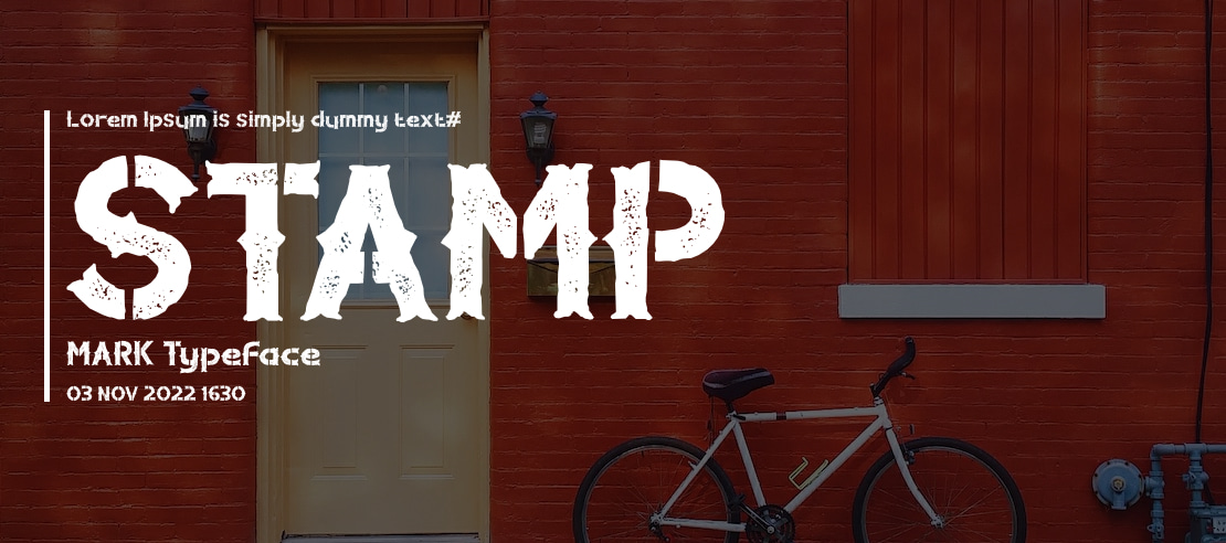 Stamp Mark is a rugged, distressed display font featuring a stencil aesthetic with eroded details, ideal for projects needing a worn, industrial, or military feel. Perfect for impactful headlines, logos, posters, and packaging design seeking a textured, vintage, or grunge appearance.