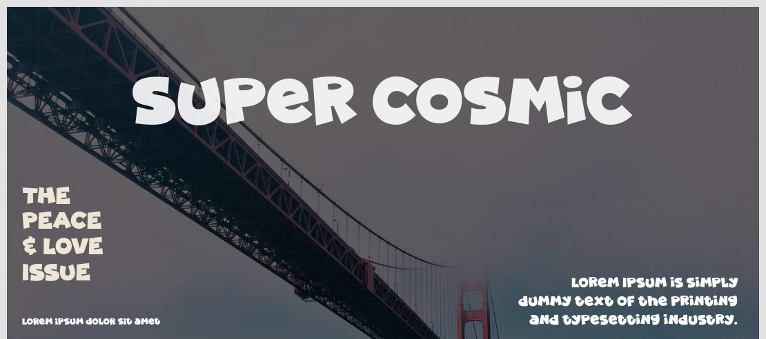 Super Cosmic is a bold, energetic display font inspired by classic comic book lettering. With its dynamic letterforms and playful vibe, it's perfect for headlines, logos, posters, and anything needing a fun, impactful, and retro comic aesthetic. Ideal for projects that want to convey excitement and adventure.