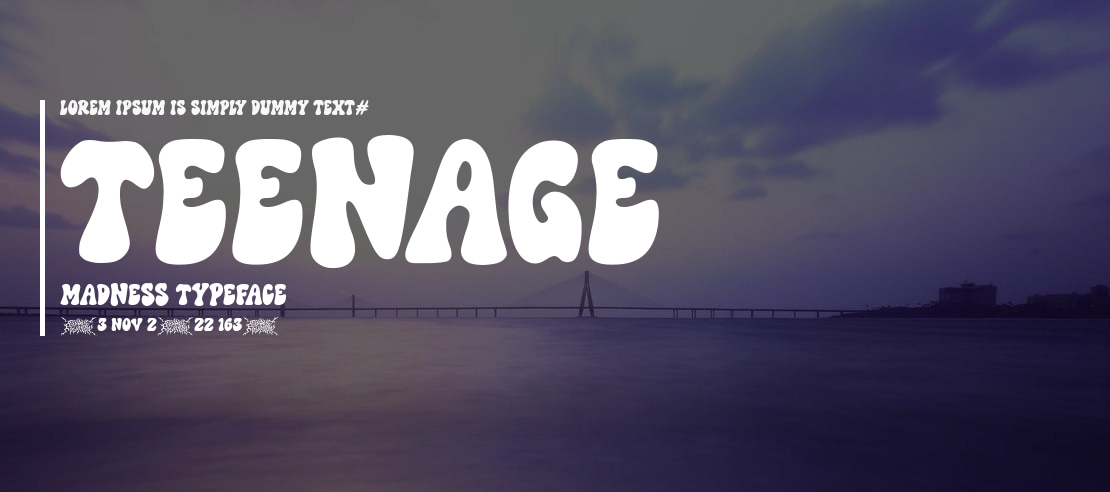 Teenage Madness is an edgy and distressed display font designed by Chequered Ink, perfect for projects requiring a rebellious, grunge, or punk rock aesthetic. Its unique distorted characters make it ideal for headlines, posters, album art, and designs seeking a raw, energetic vibe.