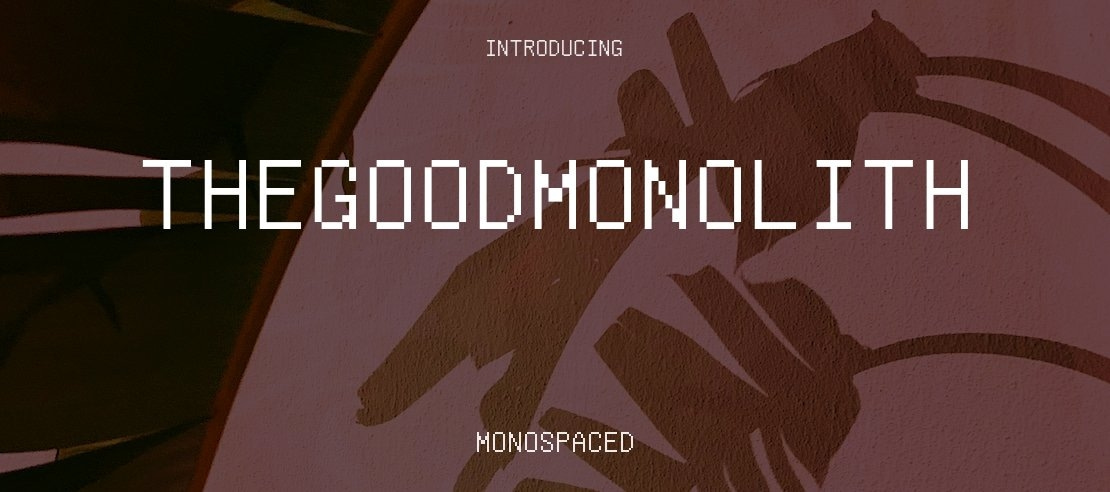 TheGoodMonolith is a distinctive pixelated monospace font, perfect for retro game interfaces, coding environments, or any project requiring a vintage 8-bit aesthetic with fixed-width clarity.
