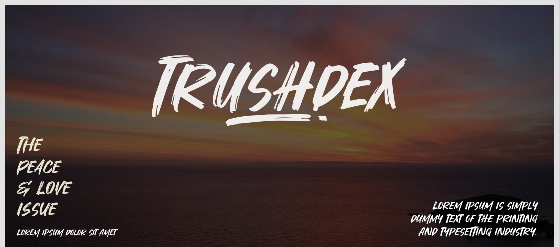 Trushdex is a bold, futuristic display font with sharp angles and a strong techno aesthetic. Ideal for striking headlines, logos, gaming, sports, and sci-fi branding that demands attention.