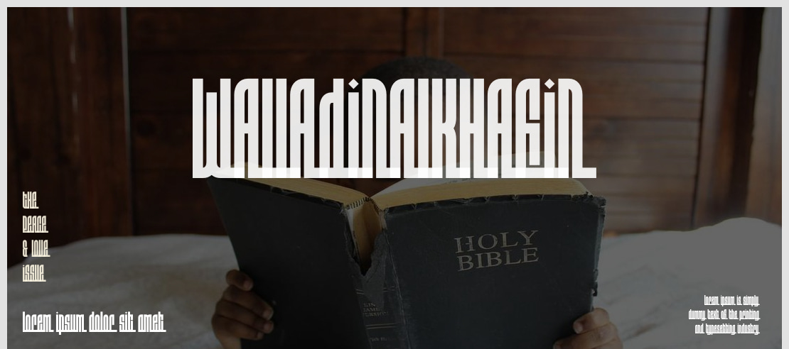 A captivating Arabic-style display font, WALLADINALKHAFIN adds an authentic touch to designs with its decorative, calligraphic elegance. Ideal for cultural themes, branding, headlines, and festive occasions, particularly those with a Middle Eastern or Islamic focus.